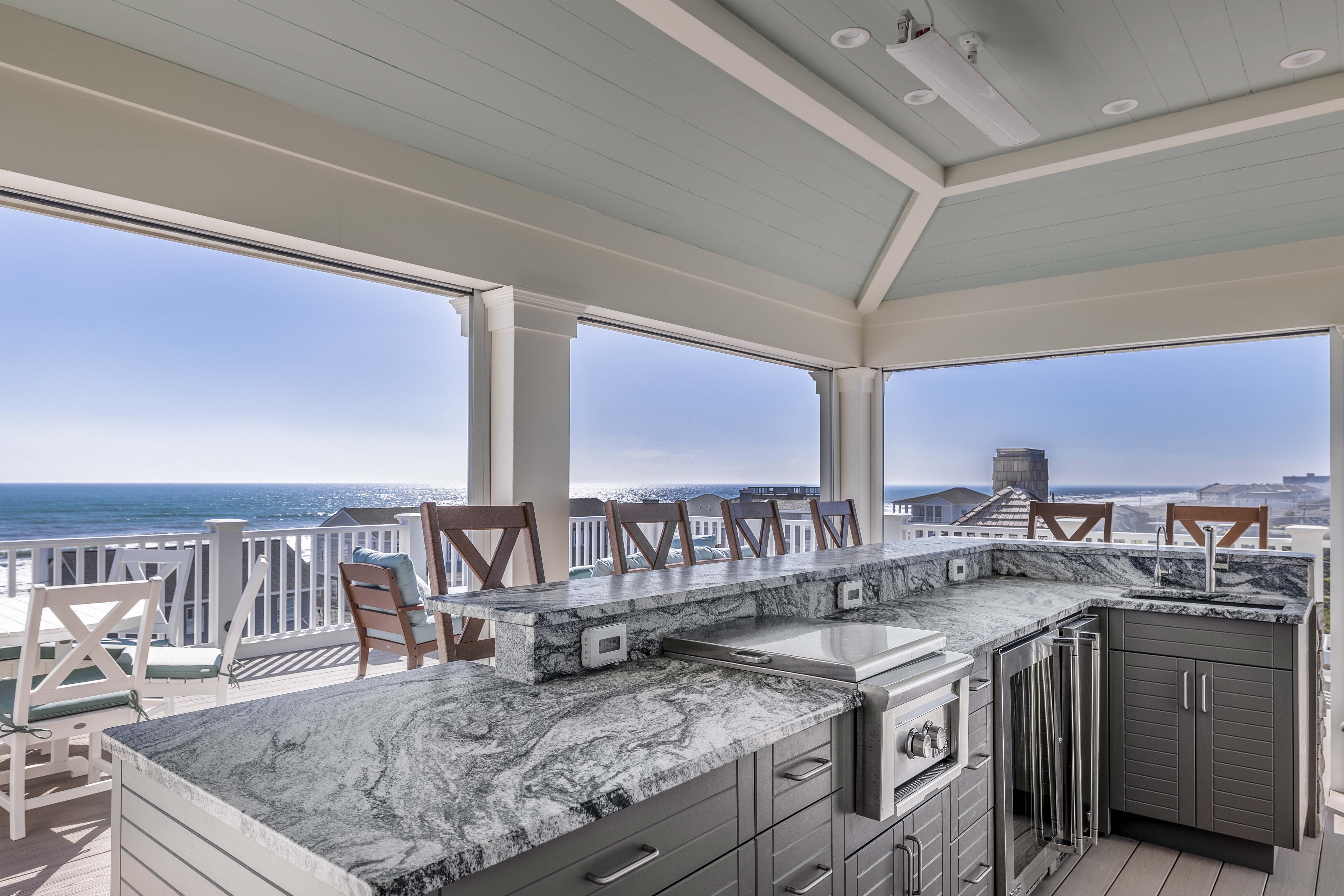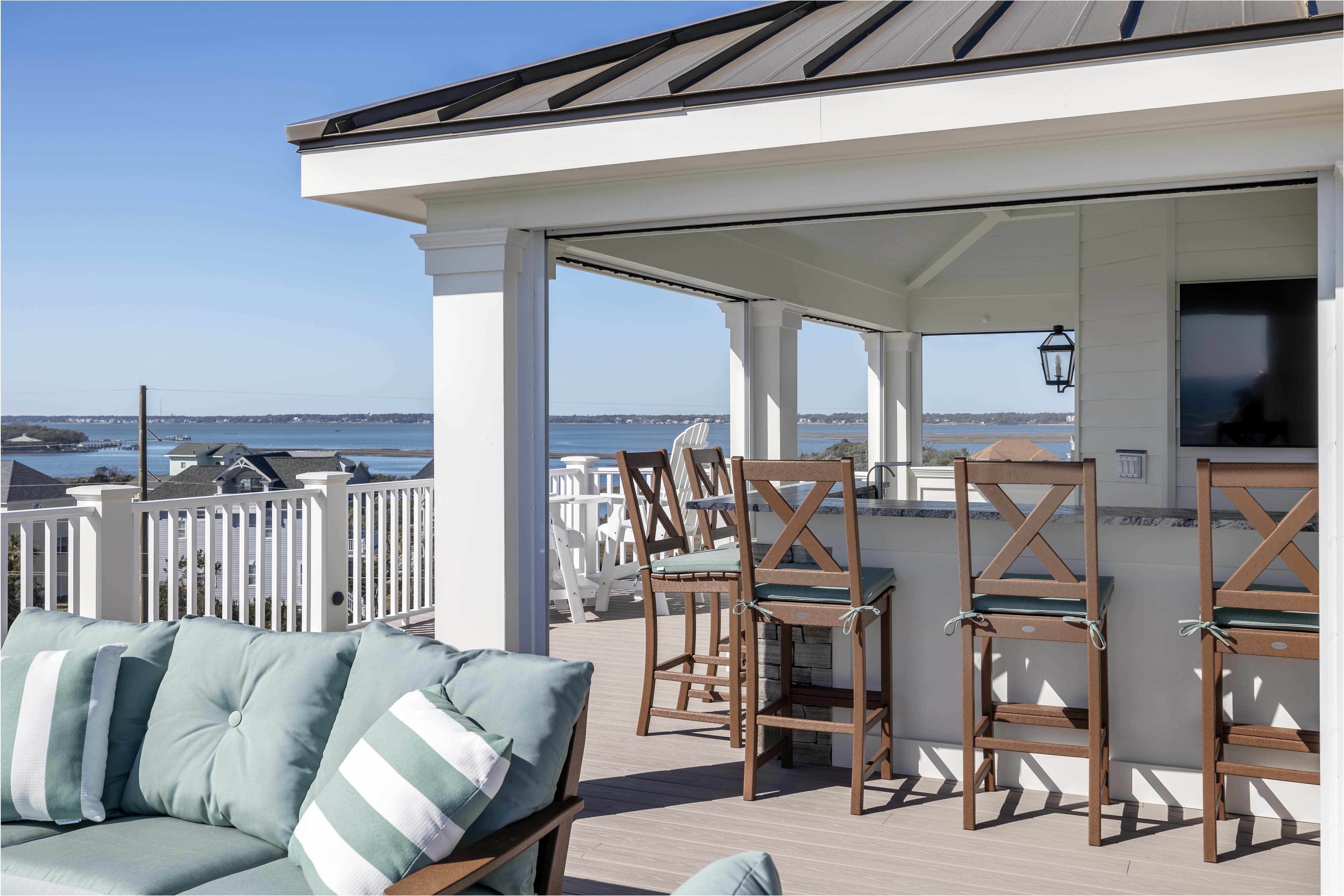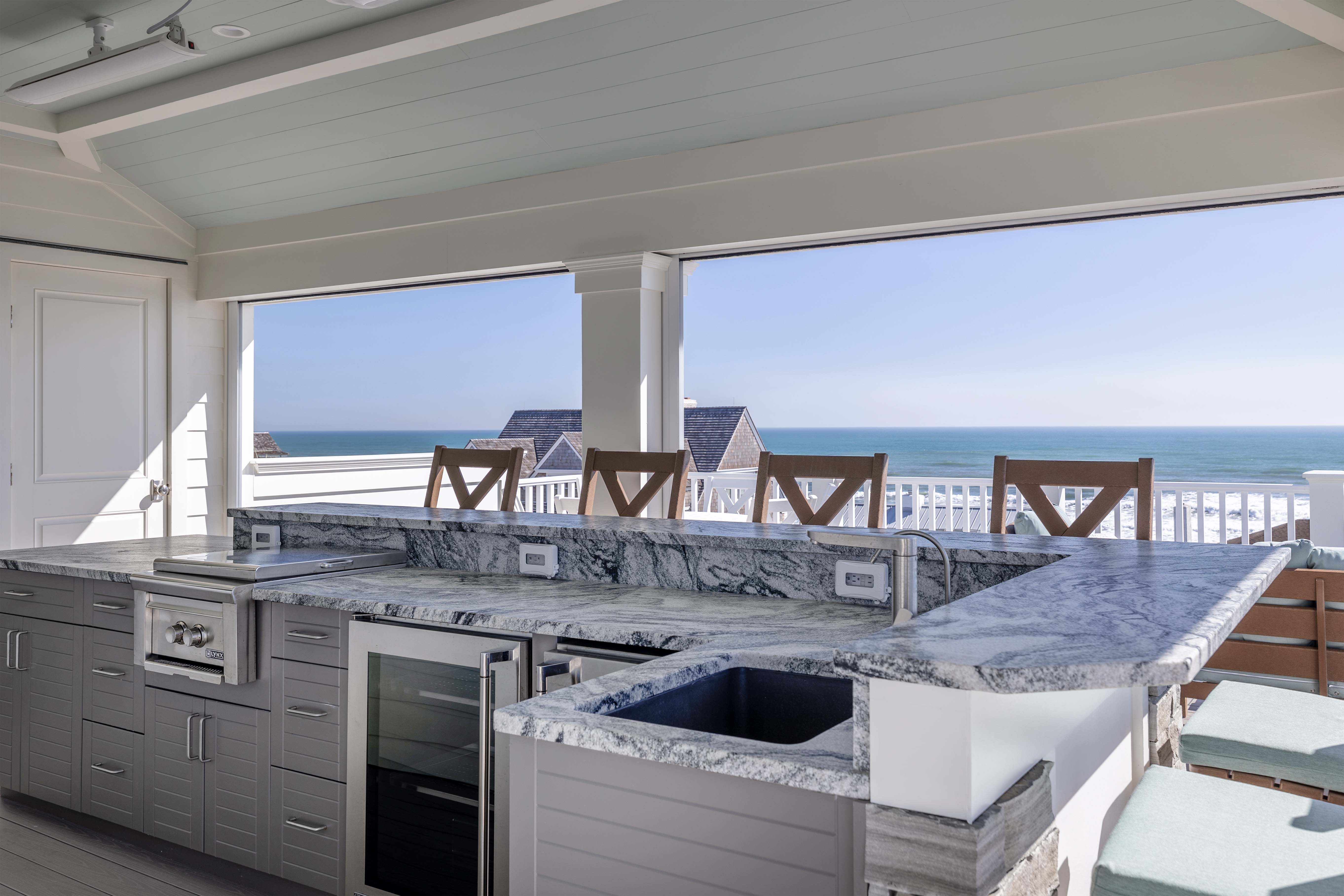 finished home includes a covered outdoor kitchen and bar, seating, and dining areas with 360-degree views of North Carolina’s crystal coast