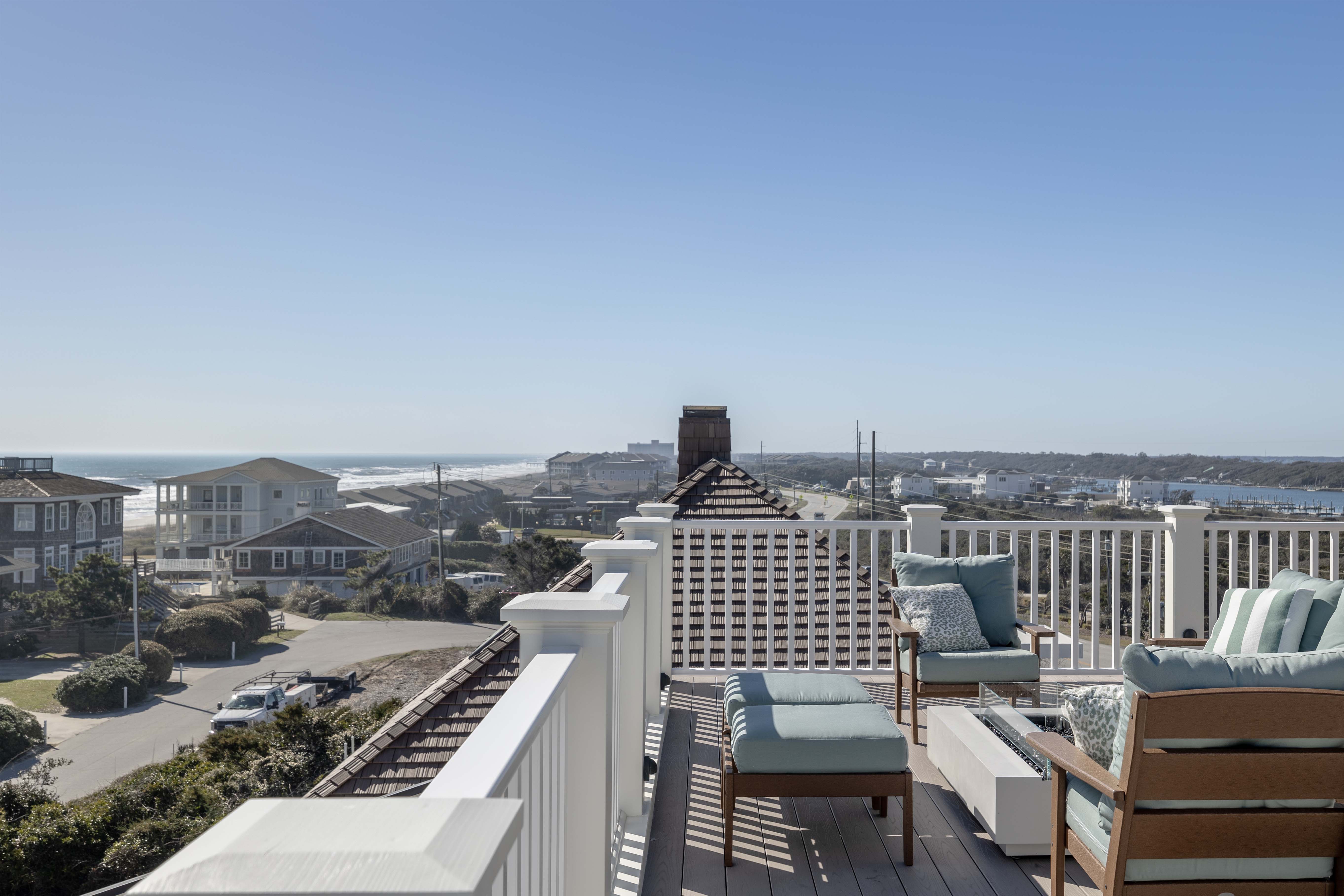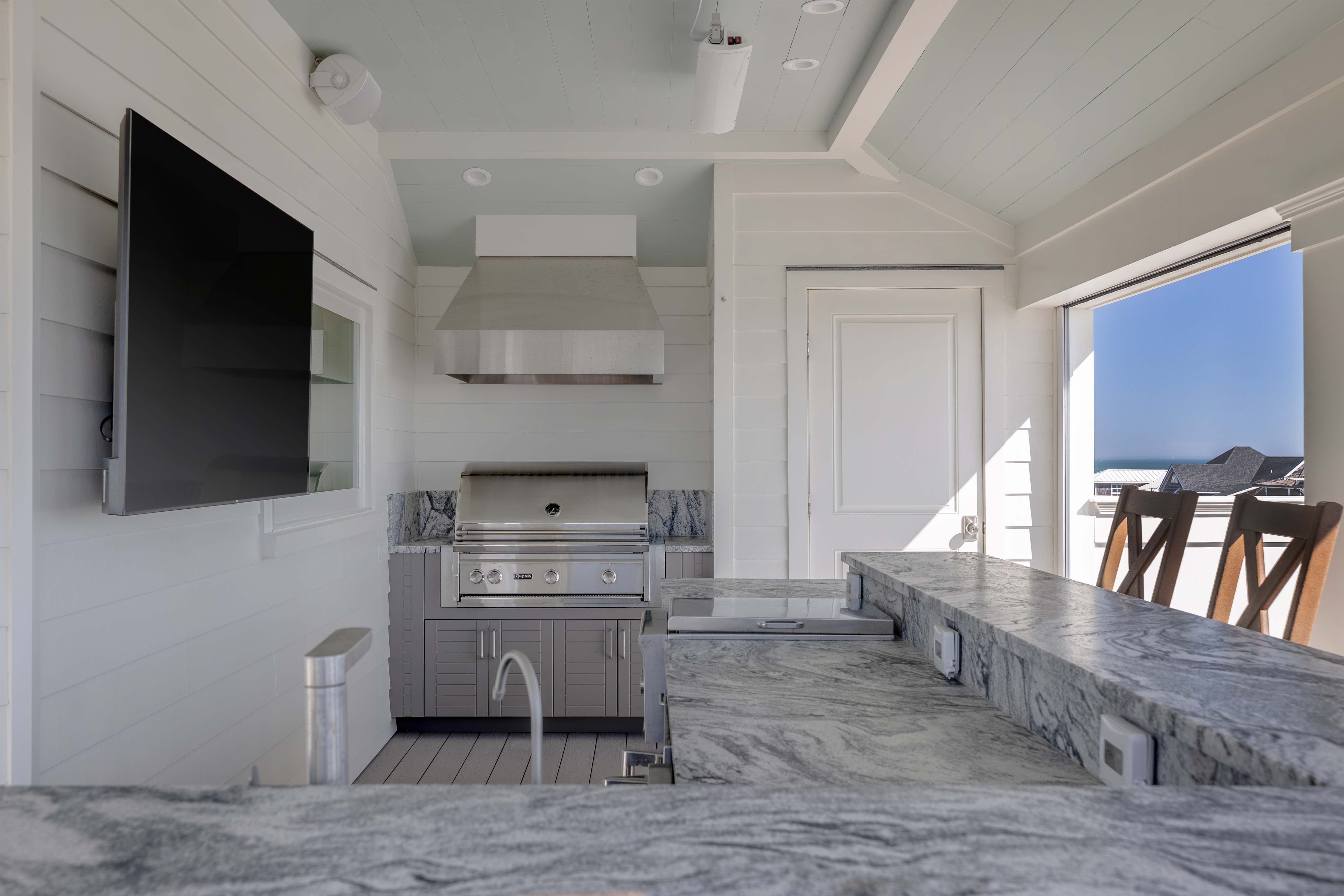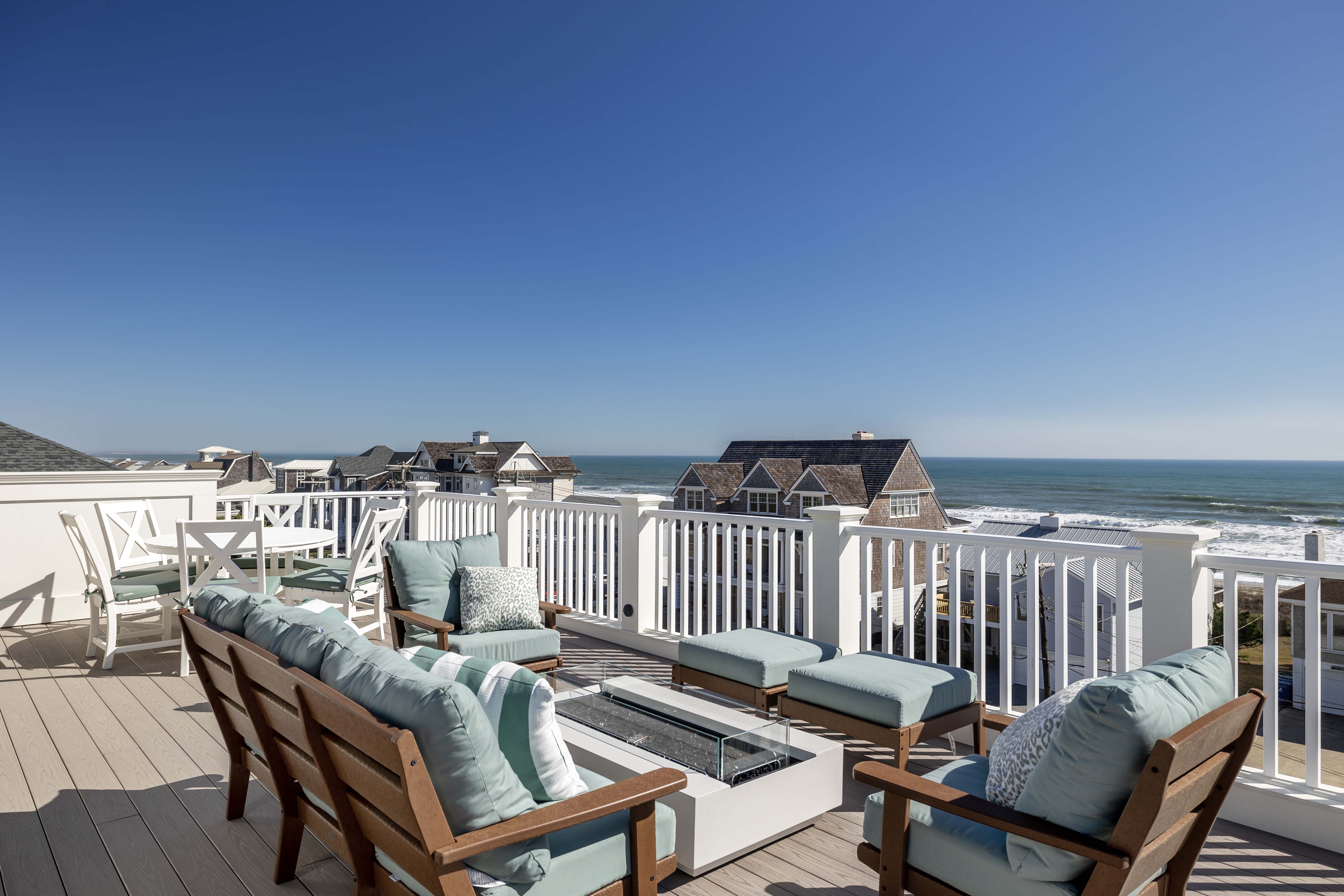 finished home includes a covered outdoor kitchen and bar, seating, and dining areas with 360-degree views of North Carolina’s crystal coast